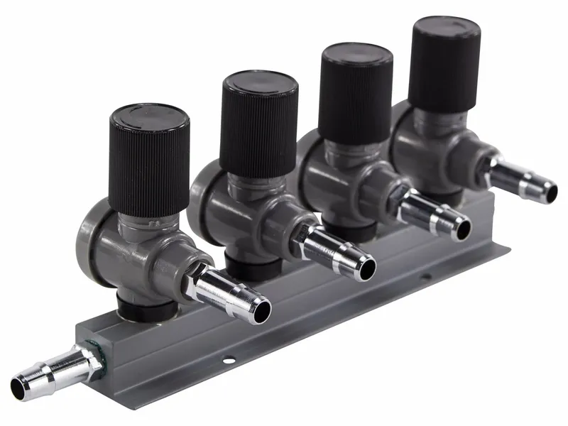 Luchtverdeler 9mm met kraan – 4 uitgangen