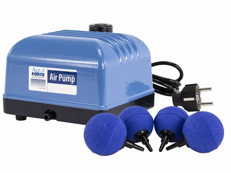 Een luchtpomp is voor vrijwel iedere vijver een aanrader. Zowel in de zomer- als in de wintermaanden kan vijverbeluchting een hele hoop problemen voorkomen. In de zomer, wanneer de watertemperaturen stijgen, neemt het zuurstofgehalte in het water af. Een te laag zuurstofgehalte zorgt niet alleen voor een afname van de waterkwaliteit maar kan ook zorgen voor acute vissterfte. In de wintermaanden kun je er met een luchtpomp voor zorgen dat de vijver (gedeeltelijk) ijsvrij blijft. De Aquaforte V-10 wordt compleet geleverd en is geschikt voor vijvers tot maximaal 6.000 liter.