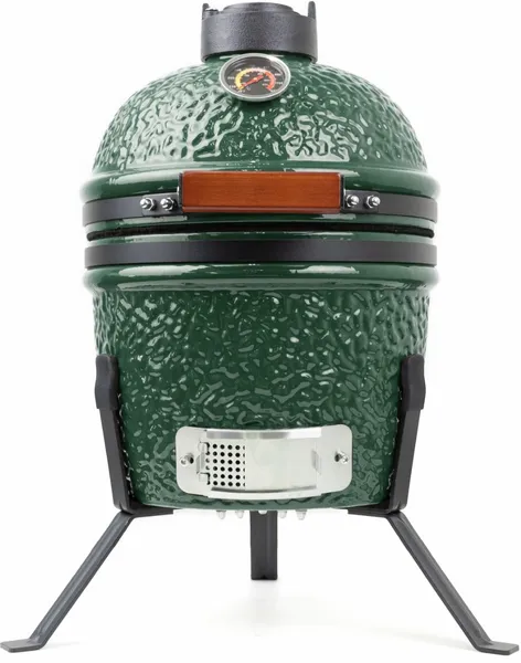 Deze 13 inch Kamado BBQ is perfect voor de beginnende barbecueër! De complete keramische barbecue is vriendelijk geprijsd en dat maakt hem ideaal om uit te proberen of zo’n keramische barbecue eigenlijk wel iets voor jou is. Het kookoppervlak heeft een diameter van 27 cm en is daarmee geschikt om 4 heerlijke hamburgers per keer te bereiden. Door zijn compacte formaat is hij ook zeer geschikt voor een kleine tuin of een balkon. Het keramische materiaal zorgt voor optimale isolatie waardoor warmte goed in de barbecue blijft. De Kamado BBQ plaats je gewoon op een verhoging of een daarvoor gemaakte werktafel, zodat je kunt grillen op de ideale werkhoogte.