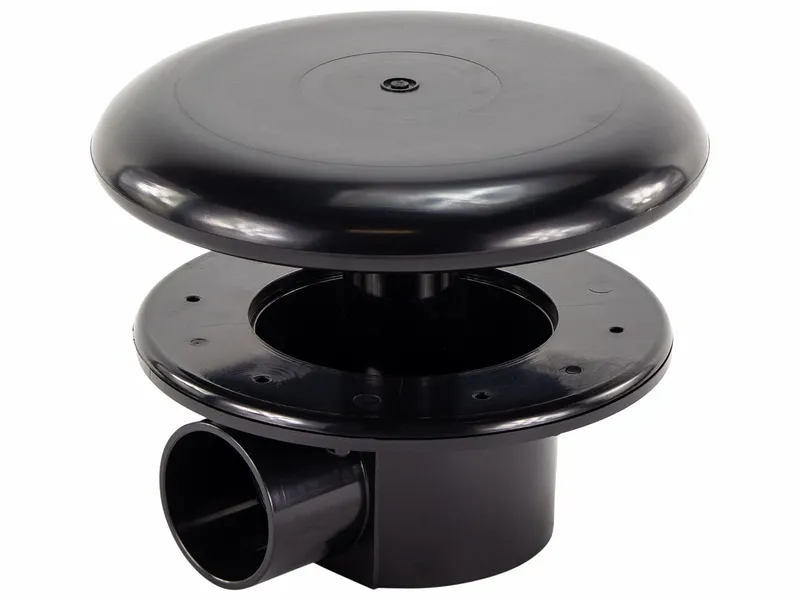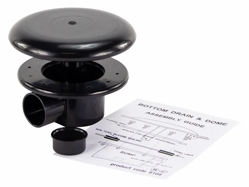 Afvoer met een beschermkap zodat er geen vissen bij kunnen komen er een goede afzuiging op de bodem is.
