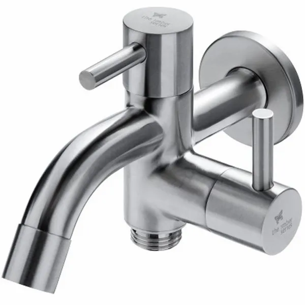 Door de dubbele uitstroompunten kun je dus de tuinslang bijvoorbeeld ook gewoon laten zitten en de kraan alsnog gebruiken.