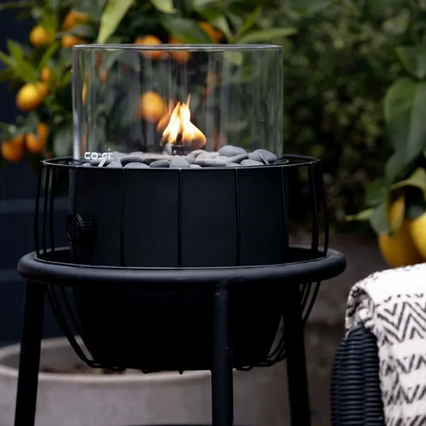 Wil je meer warmte, romantiek, gezelligheid en sfeer in je tuin of op je terras? Steek dan deze Cosi Cosicoop Basket high aan en steel de show bij je vrienden. Deze zwarte aluminium gaslantaarn verplaats je makkelijk door de meegeleverde standaard. Hij is bovendien makkelijk te verplaatsen, want hij weegt maar 4,5 kg en is 73,5 cm hoog en 21 cm breed. Deze gaslantaarn wordt geleverd inclusief de glazen ombouw, de standaard en de kiezelstenen. Om jouw lantaarn te laten werken heb je alleen nog een 190 gram gascartouche nodig. Let op: kies een gascartouche met een gas-stop-systeem. Als de gaslantaarn het contact met de cartouche verliest, dan gaat het stop-systeem automatisch in werking: super handig.