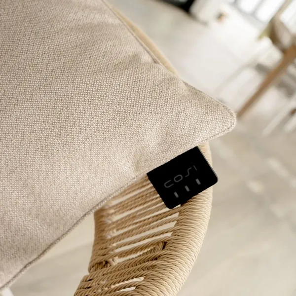 Wist je dat dit kussen eco-friendly is? Wanneer je dit kussen gebruikt is de warmte meteen voelbaar en zo hoef je de thermostaat of terrasheater niet aan te zetten. De intensiteit van de warmte bepaal je helemaal zelf. Het kussen heeft namelijk drie verschillende standen. Zet ´m op standje low 38°C, mid 45°C of high 50°C. De stand selecteer je via de warmteknop op het kussen. Met een enkele druk op de knop wordt het infrarood warmte-element geactiveerd. Of het nu overdag of avond is: je geniet van de heerlijke warmte van deze Cosipillow.