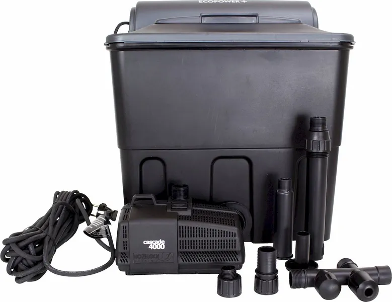 Met dit Hozelock Ecopower+ filterset ben je verzekerd van een compleet filtratiesysteem voor een heldere en gezonde vijver. Met dit complete vijverfilter in combinatie met de Hozelock fonteinpomp, vijverslang en slangklemmen ben je in een handeling klaar. Bij juist gebruik wordt ook hier de Hozelock helderder water garantie afgegeven. Deze set is geschikt voor vijvers tot maximaal 12000 liter. Deze maximale vijvergrootte is gebaseerd op vijvers zonder vissen, als je een lage of hogere visbezetting hebt wordt deze maximale inhoud verlaagd tot 9000 of 6000 liter. Bij de aankoop van deze set ontvang je de Hozelock Ecopower+ 12000, de Hozelock Cascade 4000 fonteinpomp en vijverslang (5 meter) inclusief slangklemmen.