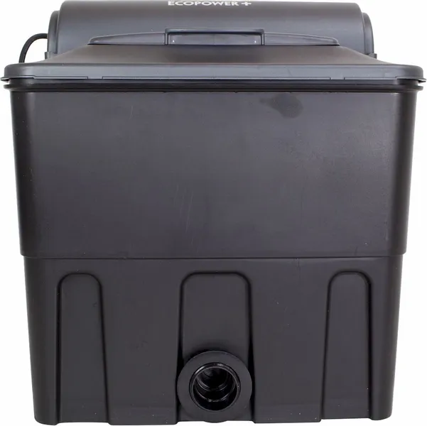 De Hozelock Ecopower+ 12000 maakt gebruik van een drietal verschillende filtermaterialen voor een mechanische รฉn biologische filtratie. Het filter dient bovengronds geplaatst te worden aan de rand van de vijver of boven aan een beekloop of waterval. Het water komt het filter binnen aan de bovenzijde. Hier wordt het vijverwater allereerst langs een UV-C lamp geleid waarna het vijverwater via een sproeikop (voegt zuurstof toe aan het water) wordt verdeeld over de schuimmat. Vervolgens stroomt het vijverwater langs het biologische Kaldnes K3 filtermateriaal.