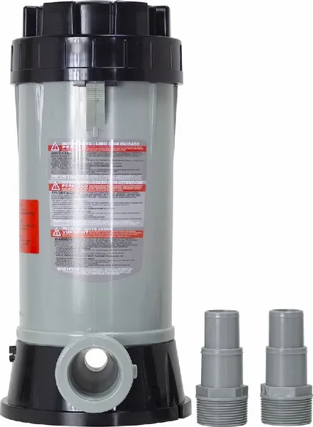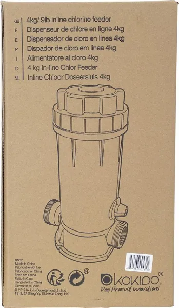 De Kokido Inline chloordoseersluizen zijn speciaal ontworpen voor het gebruik bij bovengrondse opzetzwembaden. In de chloordoseersluis kan maximaal 1,8 kilogram aan chloor worden gedaan. Je kunt dus bijvoorbeeld 9 chloortabletten van 200 gram in de installatie doen en je zwembad zal voorlopig wel voorzien zijn van genoeg chloor. Hou natuurlijk wel goed in de gaten wanneer het chloor bijna op is, want de doseersluis geeft niet aan wanneer je moet bijvullen.