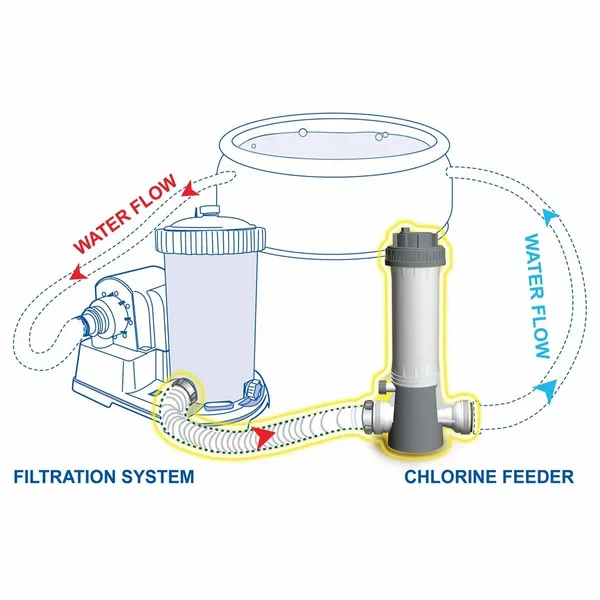 - Efficiรซntie: dankzij de doseersluis wordt het chloor veel gelijkmatiger verdeeld door je zwembad heen dan bij drijvende chloordispensers
