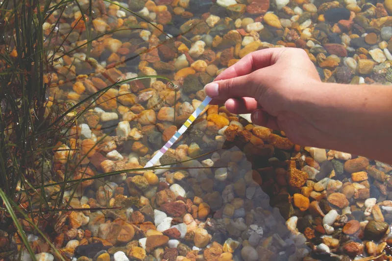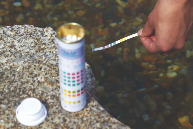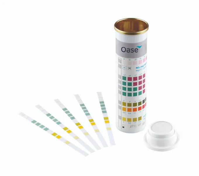 Het testen van je vijverwater met deze teststrips is ontzettend simpel. Houd de strip onder water, zodat alle vakjes verkleuren. Bekijk vervolgens de kleuren van de strip en vergelijk ze met de kleuren op de verpakking. Op de verpakking worden verschillende waarden aangegeven waardoor jij met jouw gekleurde strip jouw waterwaarden kunt vergelijken. Teststrips geven een snelle uitkomst, maar maken het soms wel lastig om juist te beoordelen wat de precieze waarde nu is.