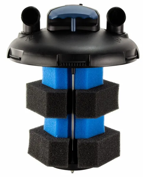 De Oase Biopress 10000 is voorzien van drie filtermousses van verschillende grofheden. De twee zwarte filtermatten zorgen in eerste instantie voor de eerste mechanische filtratie. Hierbij worden de grove en fijnere vuildeeltjes uit het water verwijderd. Tevens hebben deze filtermatten een biologische functie.