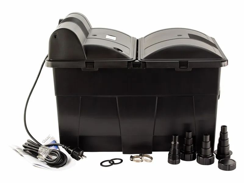 De Oase Biosmart 16000 is het ideale vijverfilter voor de grotere vijver met visbezetting. Dit doorstroomfilter van Oase heeft meerdere voordelen ten opzichte van andere filtersystemen op de markt. Het grootste voordeel is de grotere biologische filtercapaciteit. Dankzij zijn grote inhoud, een zestal hoogwaarde filtermousses én een interne UV-C filter bent u dan ook verzekerd van een gezonde en heldere vijver. Deze betrouwbare filtercapaciteit gecombineerd met een zeer eenvoudig onderhoud verklaart de enorme populariteit van deze vijverfilter.