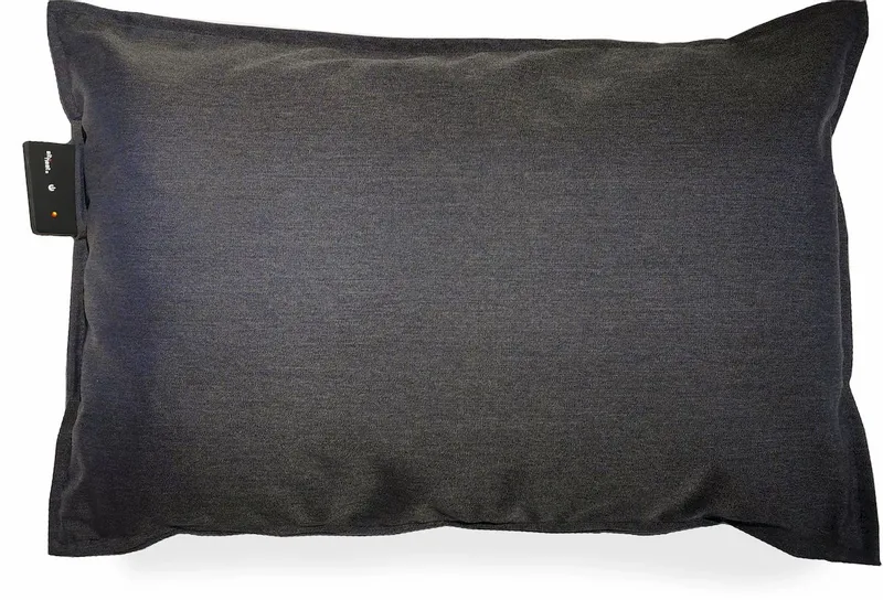 Aan het kussen zit een bedieningspaneel waarmee je het verwarmingssysteem aan- of uitzet. Wanneer het verwarmingssysteem aan staat dan brandt het LED. Knippert het LED? Dan is het tijd om de powerbank op te laden.