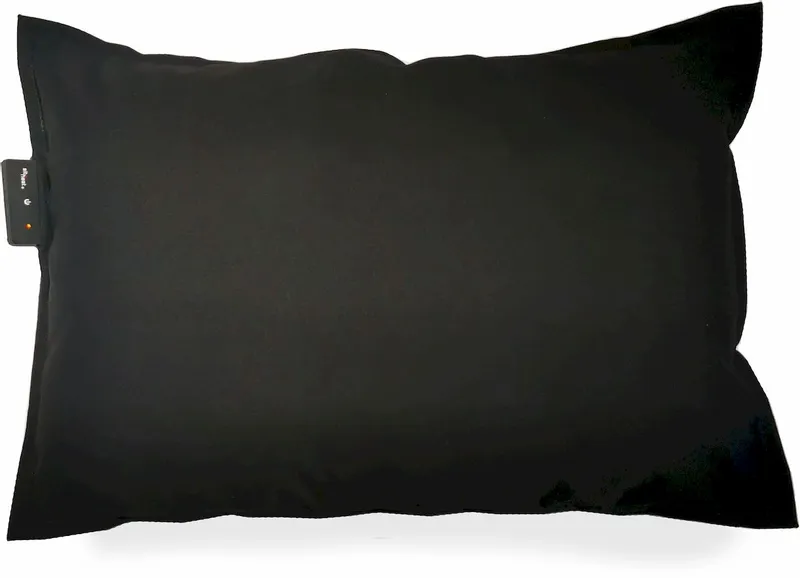Aan het kussen zit een bedieningspaneel waarmee je het verwarmingssysteem aan- of uitzet. Wanneer het verwarmingssysteem aan staat dan brandt het LED. Knippert het LED? Dan is het tijd om de powerbank op te laden.