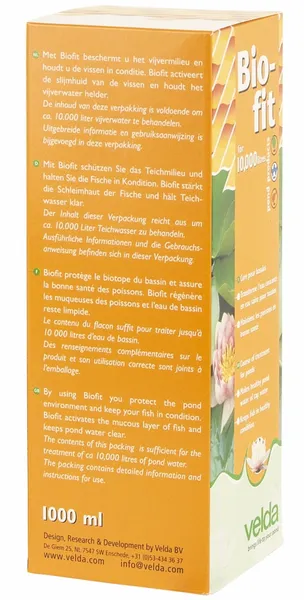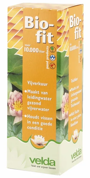 Velda Biofit is de voorjaarskuur voor uw vijver. Na een lange winterperiode gaat de conditie van de vissen en het vijvermilieu sterk achteruit. Het gevolg hiervan is dikwijls vissterfte en troebel water in het vroege voorjaar. Om deze winterschade te beperken kan in de maanden februari tot en met april Biofit aan de vijver worden toegevoegd. De werkzame bestanddelen van Biofit versterken de slijmhuid van de vissen en houden het water helder.