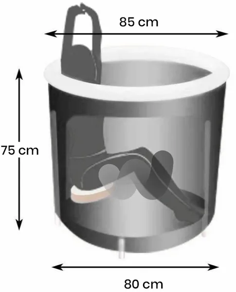 Het is natuurlijk niet de bedoeling om urenlang in een ijsbad te zitten. Meestal dompel je jezelf tussen de tien en vijftien minuten onder. Afgekoeld? Dan zit je er natuurlijk ook niet op te wachten om langer dan dat kwartier bezig te zijn met poetsen. Daarom laat je bij dit bad het water simpel weglopen door het afvoerkanaal. Dat scheelt weer tijd.